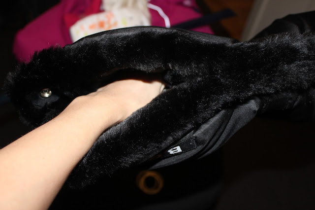 Köpte även en varm päls duna som man kan sätta händerna i när man kör vagn, slipper man frysa, Perfekt finns på Babyslottet för 299:-